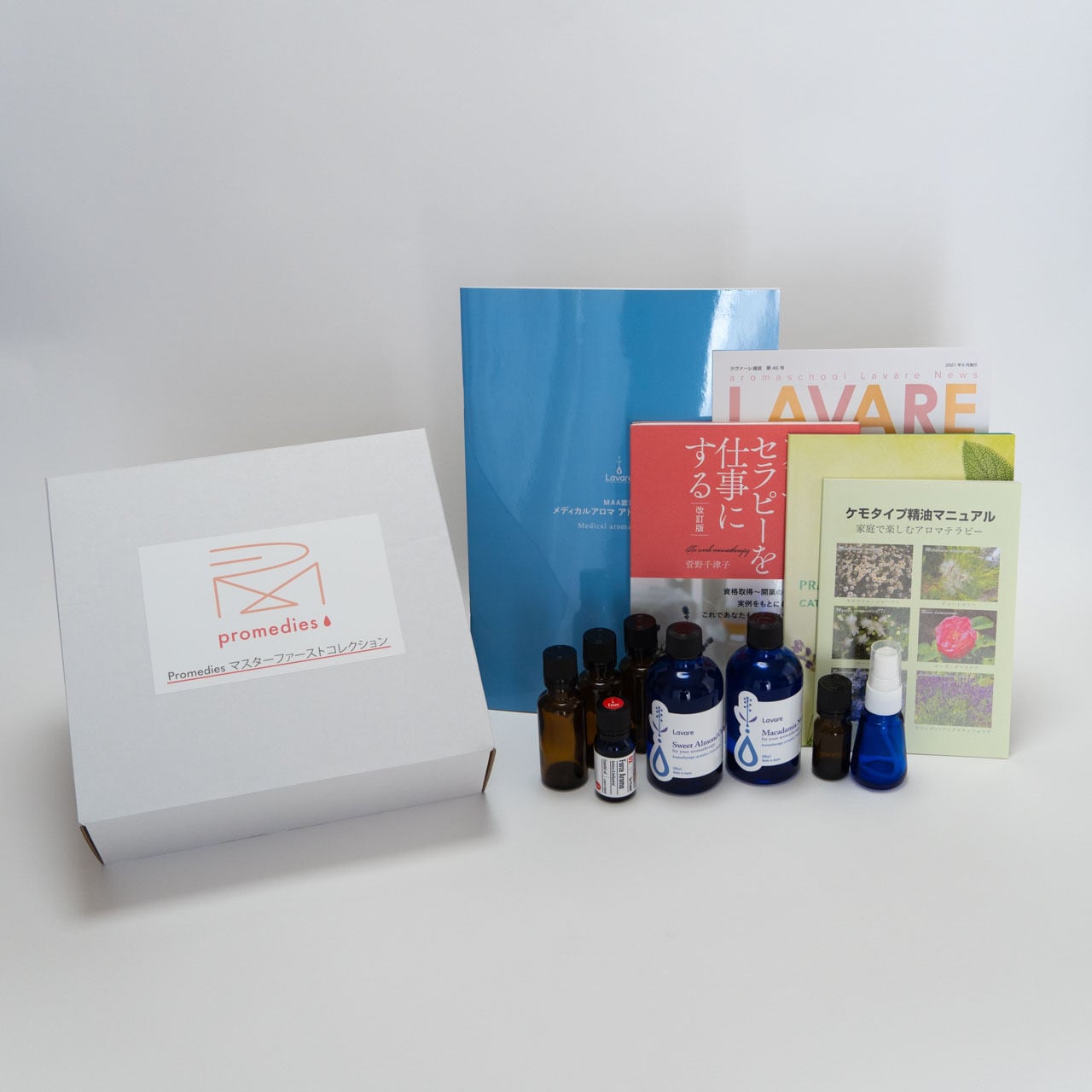 MAA認定 メディカルアロマ アドバイザー講座テキスト、62種の精油のお試しサイズセット「Promedies マスターファーストコレクション」に加え、Zoomを使用したオンライン授業を含むスペシャル7大特典がついてきます!
